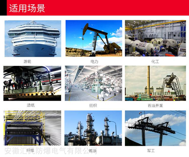 5.適用于石油石化、化工、釀酒、醫(yī)藥、油漆、紡織、印染設(shè)施等爆炸性危險環(huán)境;